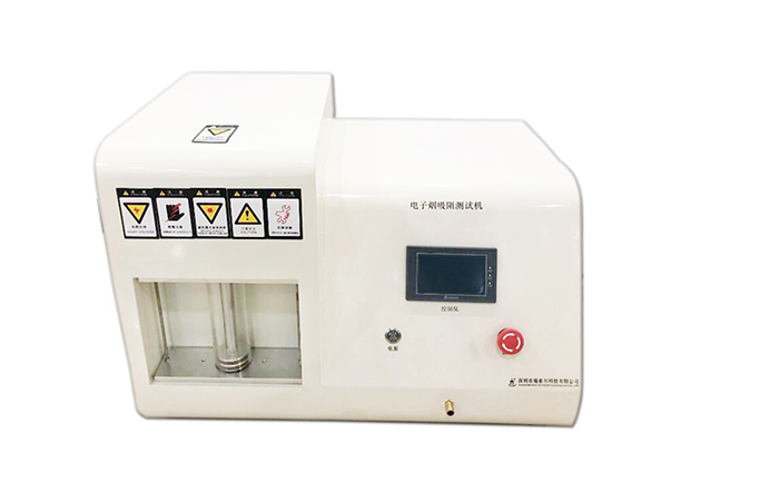 本機是用來測試成品電子煙、電子煙電池桿、電子煙霧化器等一吸一停所得之口數(shù)。能精確的控制每口的抽吸容量,觸摸屏控制及設定相關(guān)參數(shù)。其原理是設置好每口抽吸容量、抽吸時間、抽吸間隔時間、循環(huán)次數(shù)等參數(shù)后對產(chǎn)品一吸一停如此反復循環(huán)直至:電池耗盡(下降到一定的電壓)、煙油消耗完畢、或發(fā)熱絲燒斷等不再正常工作后所得的次數(shù),以此研判電子煙的使用壽命,并加以改良。